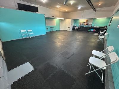 Our newly renovated training space located at 3158 County Road 43, features rubber flooring throughout the entire training room, heated 1300 sq foot room.